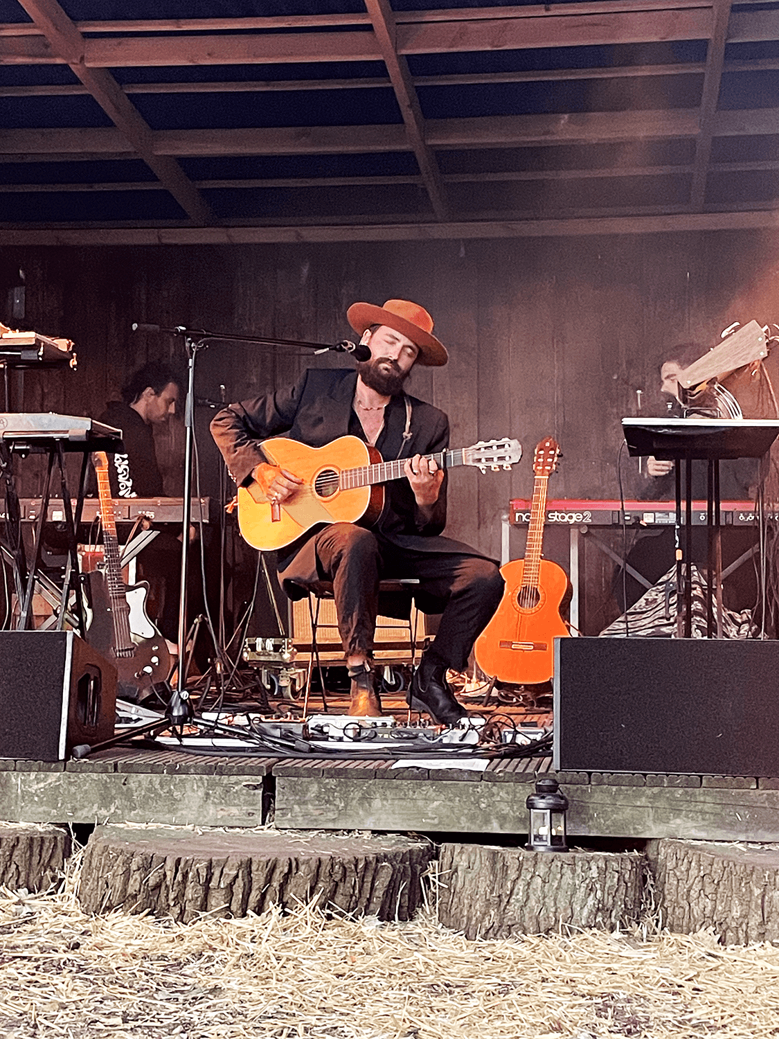 We were invited to watch one of our favourite musicians RY X (an Australian artist who travels the world performing at his sell-out shows). Last night we had the pleasure of watching him perform on a beautiful cabin-like stage in a small woodland encompassed in tall trees covered in fairy lights - which was an absolute dream. We sat on straw-bale seating with the moonlight shining through the trees and unlike at most gigs, in-between songs you could hear a pin drop. For any music lover, this is pure magic and especially for an artist like Ry. He performed a stunning mix of old classics and new ones from his upcoming album which sounded absolutely incredible in the middle of quiet woodland - the setting and acoustics will be hard to beat.
